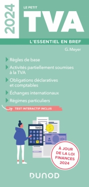En 48 pages et 16 fiches pratiques, le Petit TVA fournit toutes les notions indispensables pour calculer, déclarer et comptabiliser la TVA, avec de nombreux exemples chiffrés, en présentant notamment :les règles de baseles assujettis...